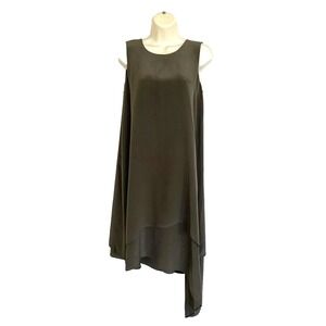 NEW Eileen Fisher Silk Asymmetrical Layered Dress XS Olive Green Sleeveless
