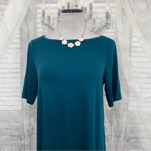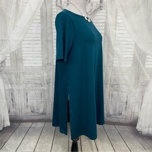 Eileen Fisher Size Small Short-Sleeve Blue Green Agean Boat Neck Long Tunic