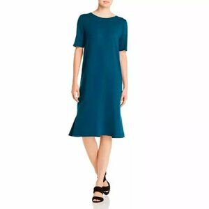 NEW Eileen Fisher Size Small Short-Sleeve Blue Green Agean Boat Neck Long Tunic