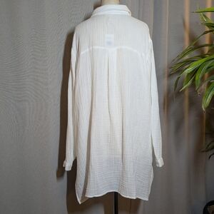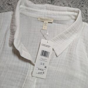 NEW Eileen Fisher White Collar Shirt Organic Cotton Lofty Gauze Classic XXL 2XL