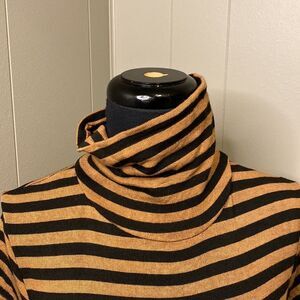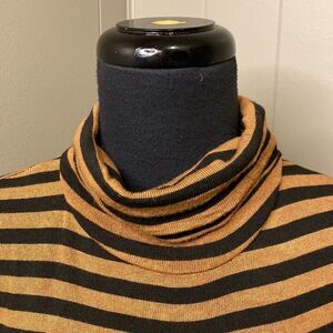NEW Elan Small Right Turtleneck T-Shirt Black/brown striped.