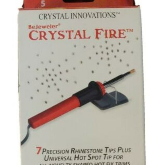 For all you crafters out there. Crystal Innovations Bejeweler. Great for applying hot fix crystals, pearls, metal and Rhine studs. Personalize your clothes, purse, costumes, anything. Comes with 7 tips. New. Bought and never used. Including a bag of new hot fix crystals to get you started. 144 crystals in the bag. Note, the only thing missing from the box is the stand. Not sure what happened to that but does not affect how this Bejewler works.