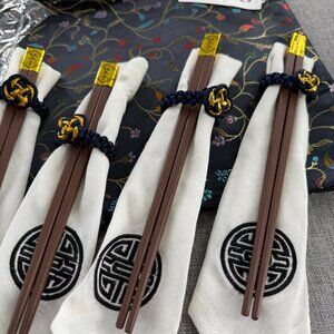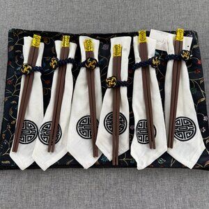 Elegant Asian inspired 6 piece Wooden Chopsticks & 6 Placemats