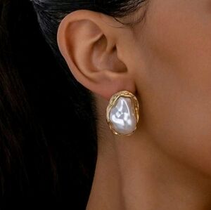 NWOT Stunning large faux baroque pearl and gold frame elegant and classic style stud Earrings, perfect for adding a touch of sophistication to any outfit. Ideal for both casual and formal occasions.