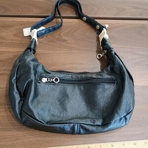 NEW Elegant Black Soft Vegan Leather Shoulder Bag