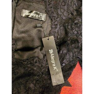 NEW Elegant Black Stretch Lace Ruffle Hem Midi Dress For Women Size Medium
