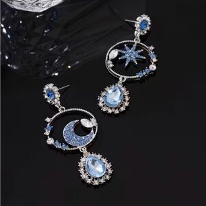 πβNEW Elegant Blue Crystal Celestial Moon Dangle Earrings π