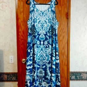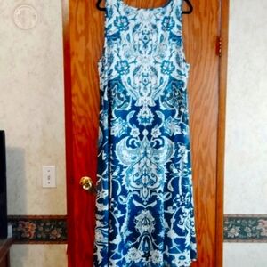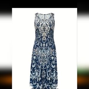 Step out in style with this NEW elegant blue patterned sun dress. Perfect for any occasion, this dress combines comfort and fashion effortlessly.