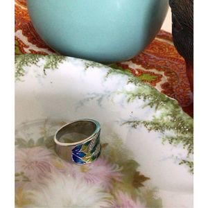 NEW Elegant Bohemian Style Ring Silver Plated Zircon Leaf Pattern Ring Size 8 🍃