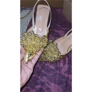 NEW Elegant Golden Beaded & Rhinestone Pointed-Toe Stiletto