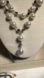 Double-strand necklace with beautiful white faux glass pearls and silver beads. Can be opened and worn long as a single strand. Features a teardrop pearl pendant.