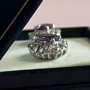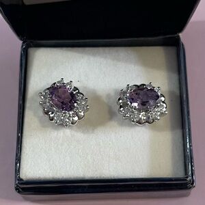NEW Elegant Silver CZ and Purple Gemstone Stud Earrings