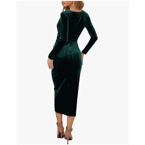 NEW Elegant Velvet Long Sleeve Wrap V Neck Ruched Bodycon Dress S