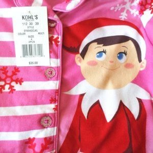 Bedtime will be warm and cozy with this adorable Elf on the Shelf pajama set & snowflake graphics. In pink.