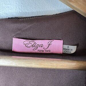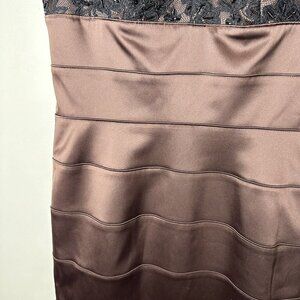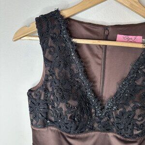 NEW Eliza J Brown Beaded Sleeveless V-neck Knee Length Lace Overlay Dress Sz 4
