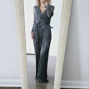 NEW Eliza J Metallic Gray Suplice Jumpsuit Size 16