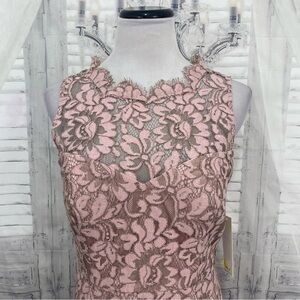 Eliza J Siz 8 Blush Pink Sleeveless Lace Applique Illusion Sheath High Neck