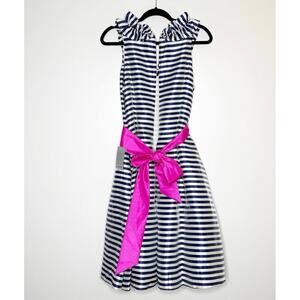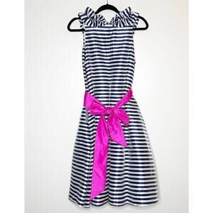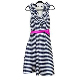 NEW Eliza J Striped Ruffle Fit & Flare Midi Dress Women's Blue White Size 10