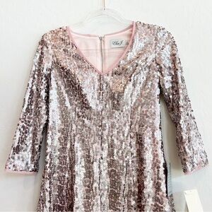 New with tags - Eliza J sequin mesh fit and flare cocktail dress. Pink with silver all-over sequins. Retail $158.
