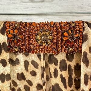 Elizabeth Hurley 100% Silk Leopard Print Beaded Bathing Suit Coverup