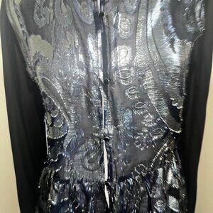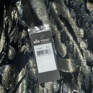 NEW Ella Moss Black Metallic Gold Top Sheer Long Sleeves Peplum Hem Medium NWT