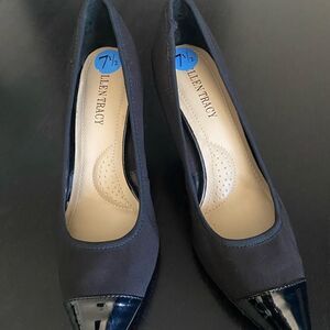 New! Ellen Tracy patent cap toe pointed toe pumps heels stilettos size 7.5. Black fabric with patent cap toe. Pointed toe 3” stiletto heels .