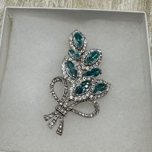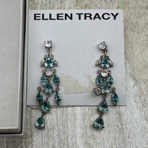 NEW Ellen Tracy Cubic Zirconia Dangle Earrings & Broach Set Teal