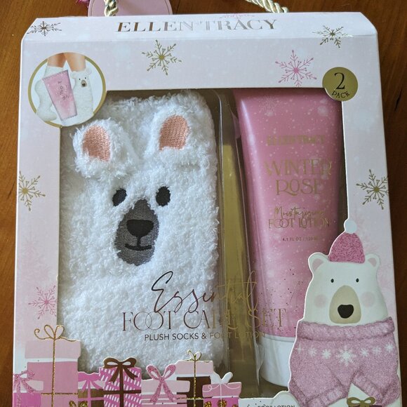 NEW Ellen Tracy Llama Cozy Socks & Winter Rose Foot Lotion