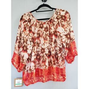 NEW Ellen Tracy Top‎ Women's Large Tie Dye LIGHTWEIGHT Boho Summer Loose