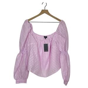 NEW Eloquii Crop Top Women's Size 18 Pink Gingham Sheer Square Neck Puff Sleeve