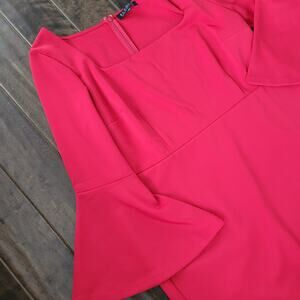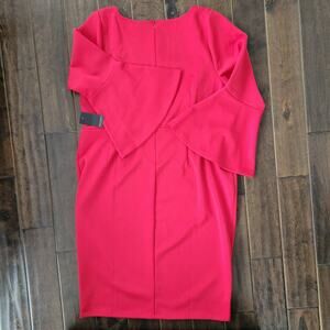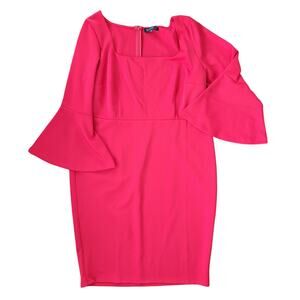 NEW Eloquii Square Neck Flare Sleeve Scuba Dress Red Stretch Midi 24