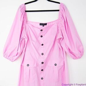NEW Eloquii pink Puff Sleeve Dress with Pocket Detail, 16