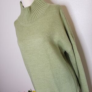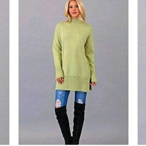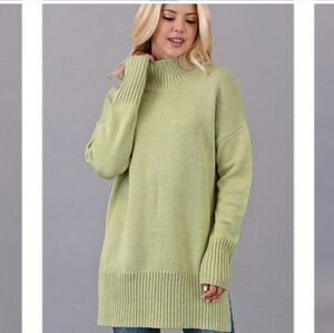 NEW Elysia Meadow Green Sweater Tunic Long Tall Thick Knit Turtleneck Spring