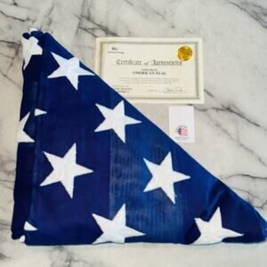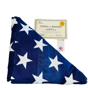 Official U.S. Interment Flag for Burial or Display The U.S. Interment Flag is the same flag that is made for the U.S. Department of Veterans Affairs, which meet Government Specification. It is the traditional U.S. casket flag size of 5 x 9 ‚½¢ ‚ ‚ that is presented by the VA to veterans of the U.S. Armed Forces and families of deceased veterans and is draped over the casket during Military Burial services. U.S. Interment flags are made from 100% cotton with embroidered stars, sewn stripes, and a canvas duck header. Made in the USA. Our Official U.S. Interment Flag has these quality features: Official 1 to 1.9 hoist to fly ratio Made from 100% cotton Embroidered stars and sewn stripes Canvas duck header 2 solid brass grommets Made in the USA For use with poles 20'