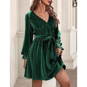 Keywords: velvet dress, green dress, emerald dress, long sleeve dress, v neck dress, Velour dress, a line dress, mini dress, party dress, cocktail dress, evening dress, Elegant, Guest, Anniversary, Celebration, Party, Dinner, Event, Shower, Date Night, Occasion, Fall, Winter, Christmas Party, Event, NYE, Holiday, Glam, Bling, Cocktail, Homecoming, Hoco,