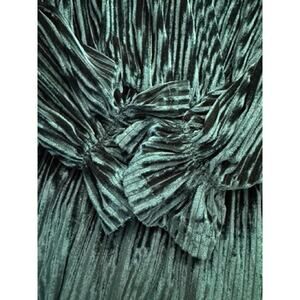 Enchanting emerald allure defines this captivating velvet dress. Designed with a flattering V-neckline that accentuates the décolletage and long sleeves with delicate ruffle detailing, this piece exudes effortless sophistication. The plush velvet material adds a touch of luxury and depth. The vertical ribbing throughout the dress adds texture and visual interest, enhancing the overall design. Perfect for a festive cocktail party, a romantic dinner, or an elegant evening event.