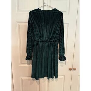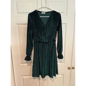 NEW Emerald Green Velvet Velour Dress Long Sleeve V Neck Dress