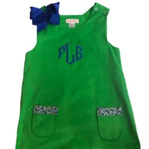 Adorable spring green lightweight cord classic jumper with authentic Liberty of London trim. It can be worn with a shirt or without as the weather warms up. Looks super cute with a monogram.