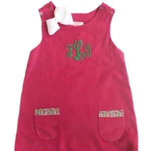 Adorable hot pink lightweight cord classic jumper with authentic Liberty of London trim. It can be worn with a shirt or without as the weather warms up. Looks super cute with a monogram.