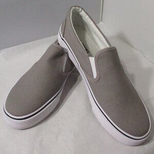 NEW Emma Comfy Gray & White Ladies Womens Canvas Casual Slip-On Shoes Size 10