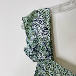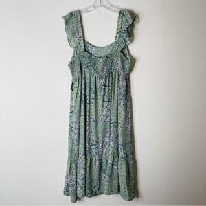 NEW Emma & Michele green blue white floral cottagecore boho midi dress XL