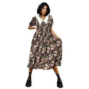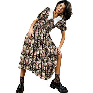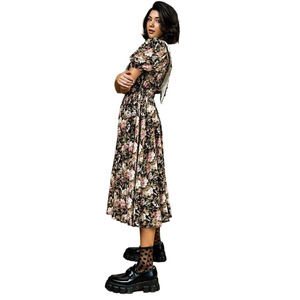NEW En Saison Forever Dreaming Midi Dress Women's Size S Floral Puff Sleeve