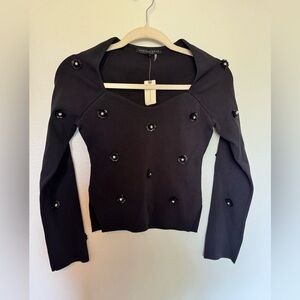 NEW Endless Rose Embellished Floral Sequin Sweater Anthropologie Black XS NWT