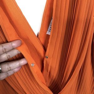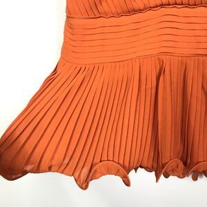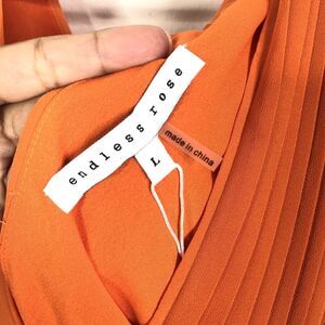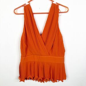 NEW Endless Rose Orange Pleated Lettuce Hem Surplice Neck Sleeveless Top Size L