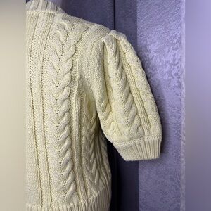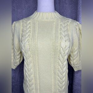 NEW English Factory Cable Knit Puff Sleeve Sweater Top in Lemon Sz S