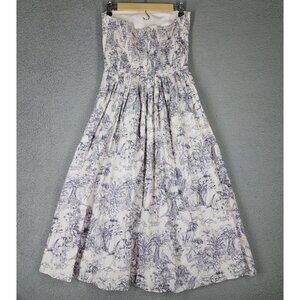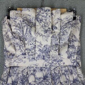 NEW Entro Midi Dress Women's Large Pleated Floral Tropical Jungle Feminine Blue
