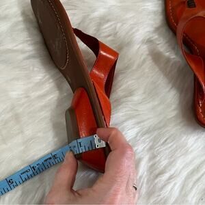 New without box Gorgeous Orange Coral Leather Xandra Square Open Toe Slip-On Thong Sandals by Enzo Angiolini. Low Mod Kitten Style 1” Heel. Y2K. Women’s Size 5.5.