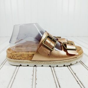 NEW Esprit Brielle Womens Metallic Tan Buckle Slip On Flat Summer Sandals M45