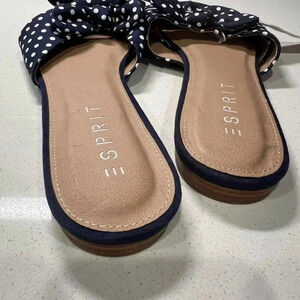 New Esprit sandals, size 10 flats in navy with white polka dots. They have never been worn.