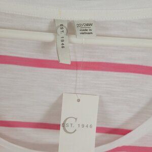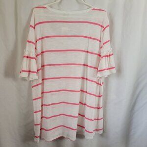 NEW Est. 1946 Top Tunic Pink White Stripe 22/24W ruffle scoop neck feminine NWT